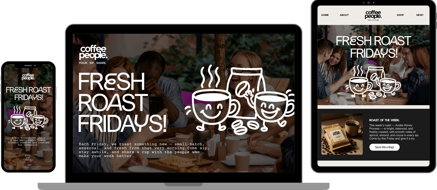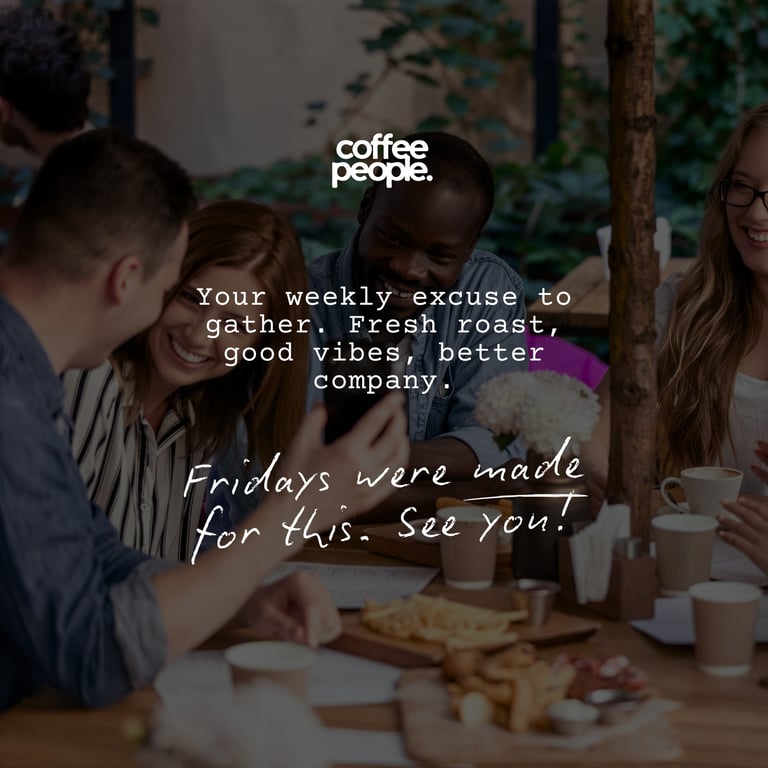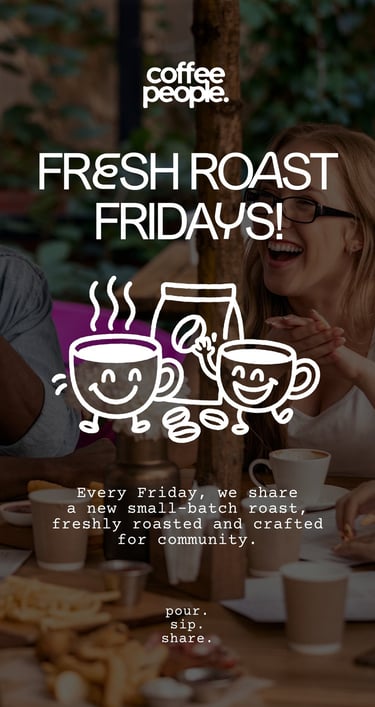 Coffee People is a community-centered coffee roastery that celebrates connection through craft. Known for its weekly Fresh Roast Fridays, the brand roasts small-batch, seasonal coffee designed to bring people together — one pour, one sip, one shared moment at a time.
